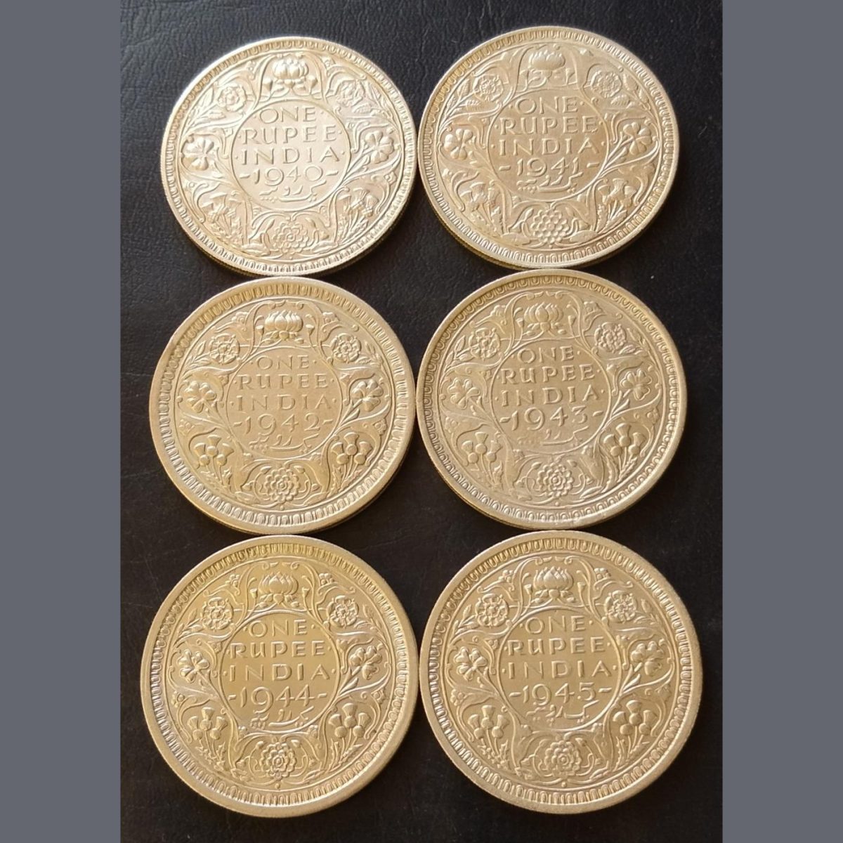 KING👑👑👑GEORGE Vl 6 DIFFERENT years YEARS- 1₹ COMPLETE SET DATES DETAILS:- 1940/41/42/43/4