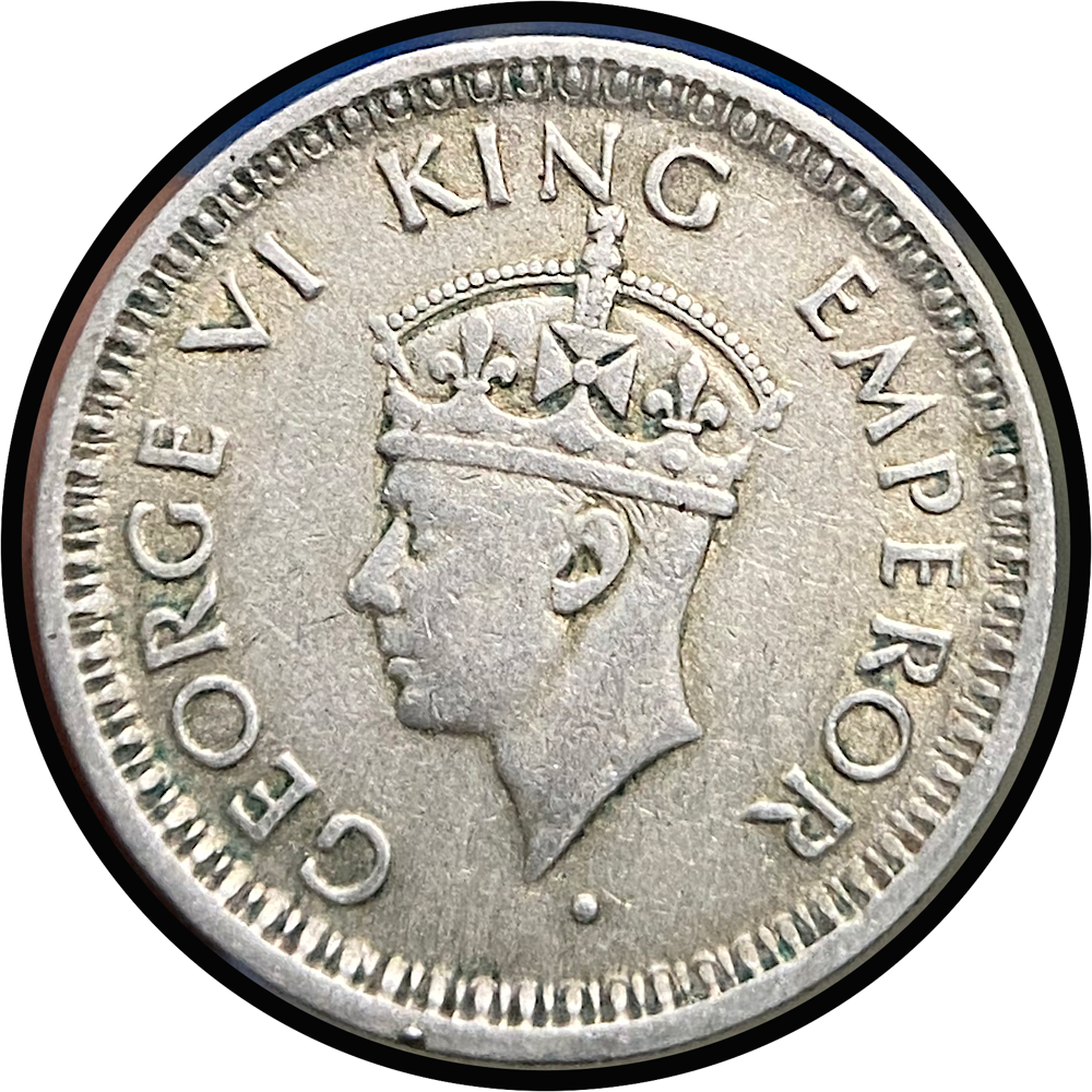 Immerse yourself in the rich history of numismatics with the King George VI 1/4 Rupee minted in 1944 at the esteemed Bombay Mint (Mumbai). This rare coin, bearing the image of King George VI, holds both historical and collectible significance. Crafted from a blend of metals, this quarter-rupee denomination piece showcases the meticulous craftsmanship of the Bombay Mint. The coin’s design reflects the era of King George VI’s reign and the historical events that shaped that period. Numismatic enthusiasts will appreciate the rarity and historical value of this coin, making it a prized addition to any collection. Its exceptional condition and provenance further enhance its collectible appeal, offering a glimpse into India’s numismatic past.
