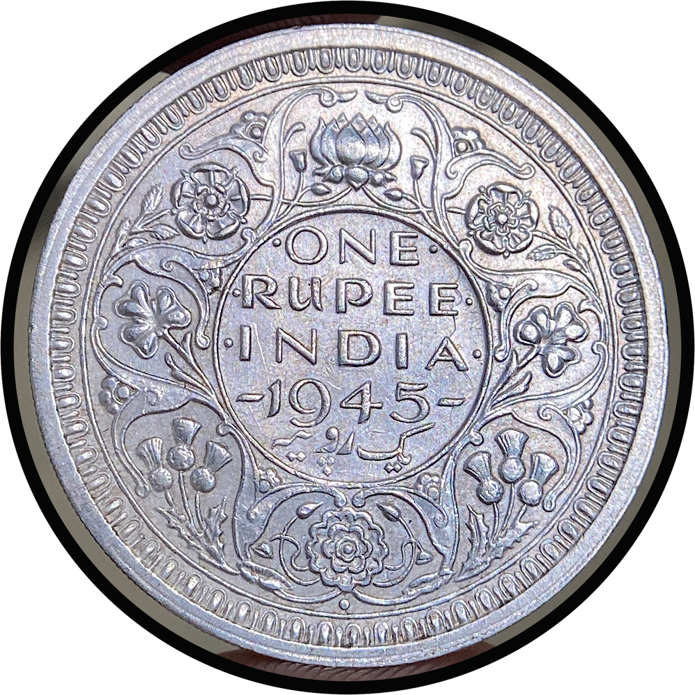 King George VI, Silver Rupee, 1945 Bombay mint