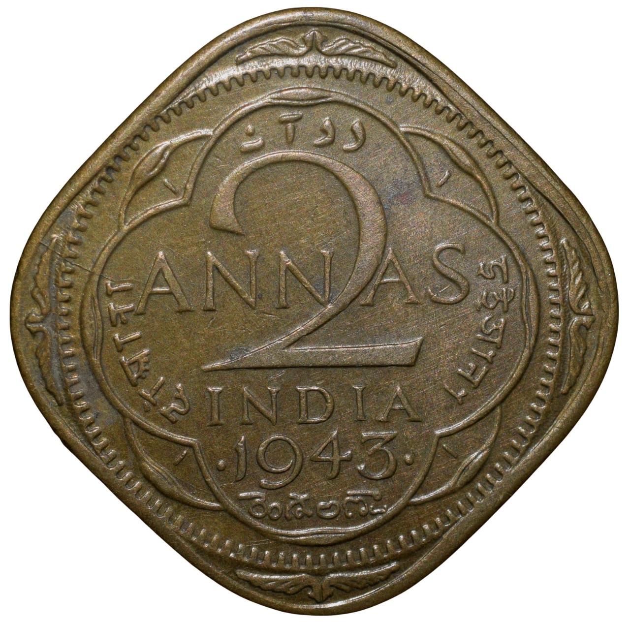 George VI, (AD 1943), Nickel-Brass 2 Annas, Bombay Mint, Head Type II, Extremely fine, Scarce.