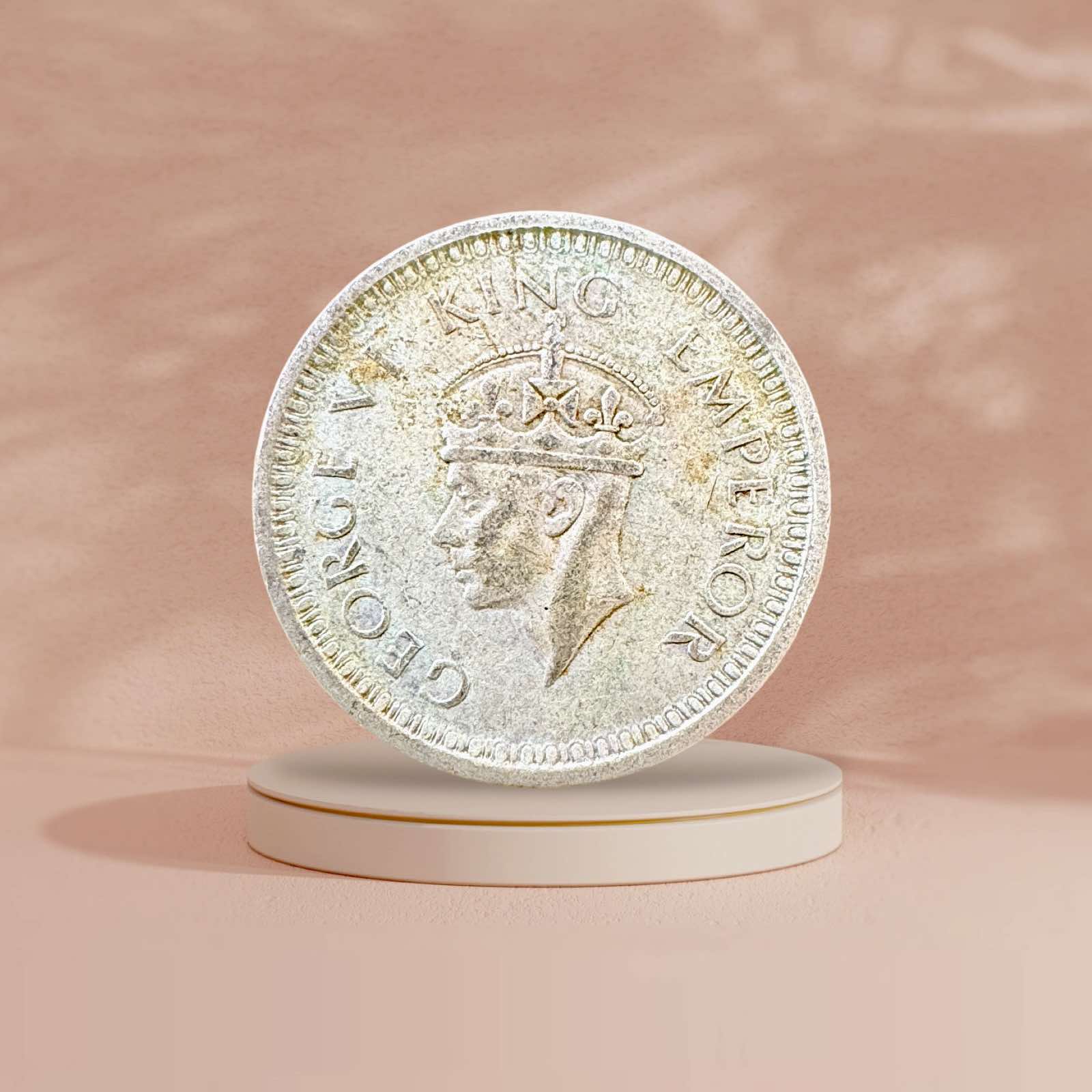 Transport yourself back to the historical era with this One Rupee Half Silver 1944 King George VI Issue from the Lahore Mint. This collectible piece of economic history showcases exquisite craftsmanship and design, reflecting the monetary heritage of India. The silver metal composition adds a touch of prestige to this rare item, making it a coveted addition to any numismatist’s collection. With its unique Lahore Mint origin and King George VI’s iconic portrait, this banknote is a treasure trove of historical significance. Explore the art of banknote collection and dive into the world of rare and valuable currency with this exceptional piece. Collectors and enthusiasts alike will appreciate the charm and allure of this distinguished artifact, perfect for showcasing and cherishing for generations to come.