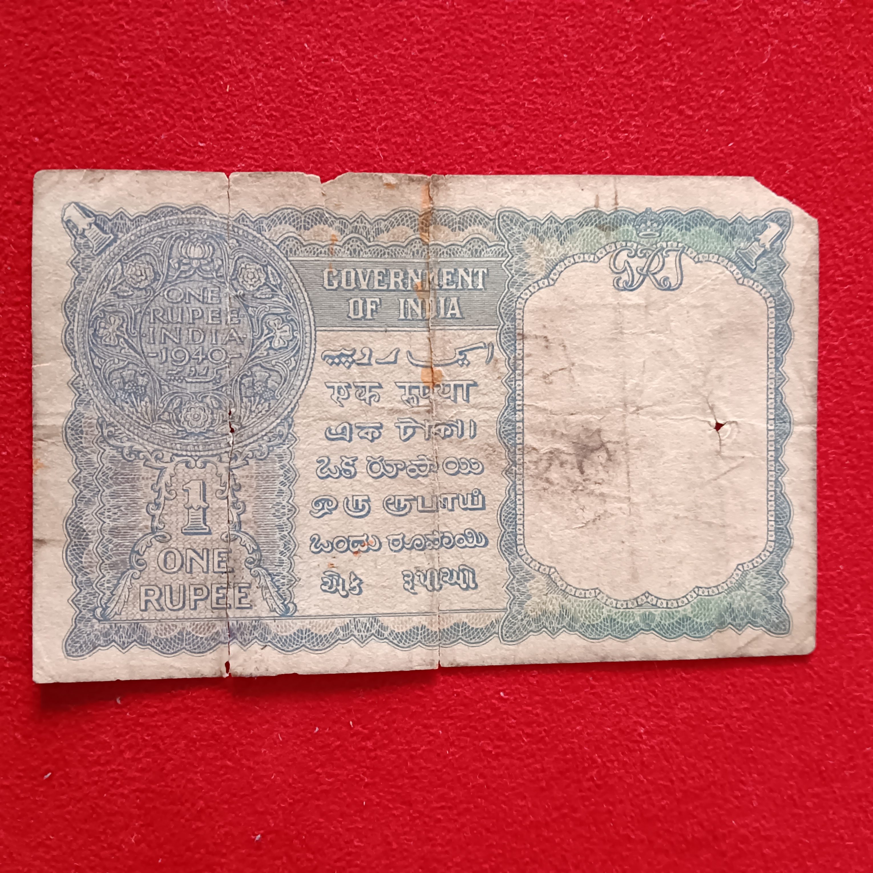 - Rare Note One Rupee George Vi 1940 Year British India Note