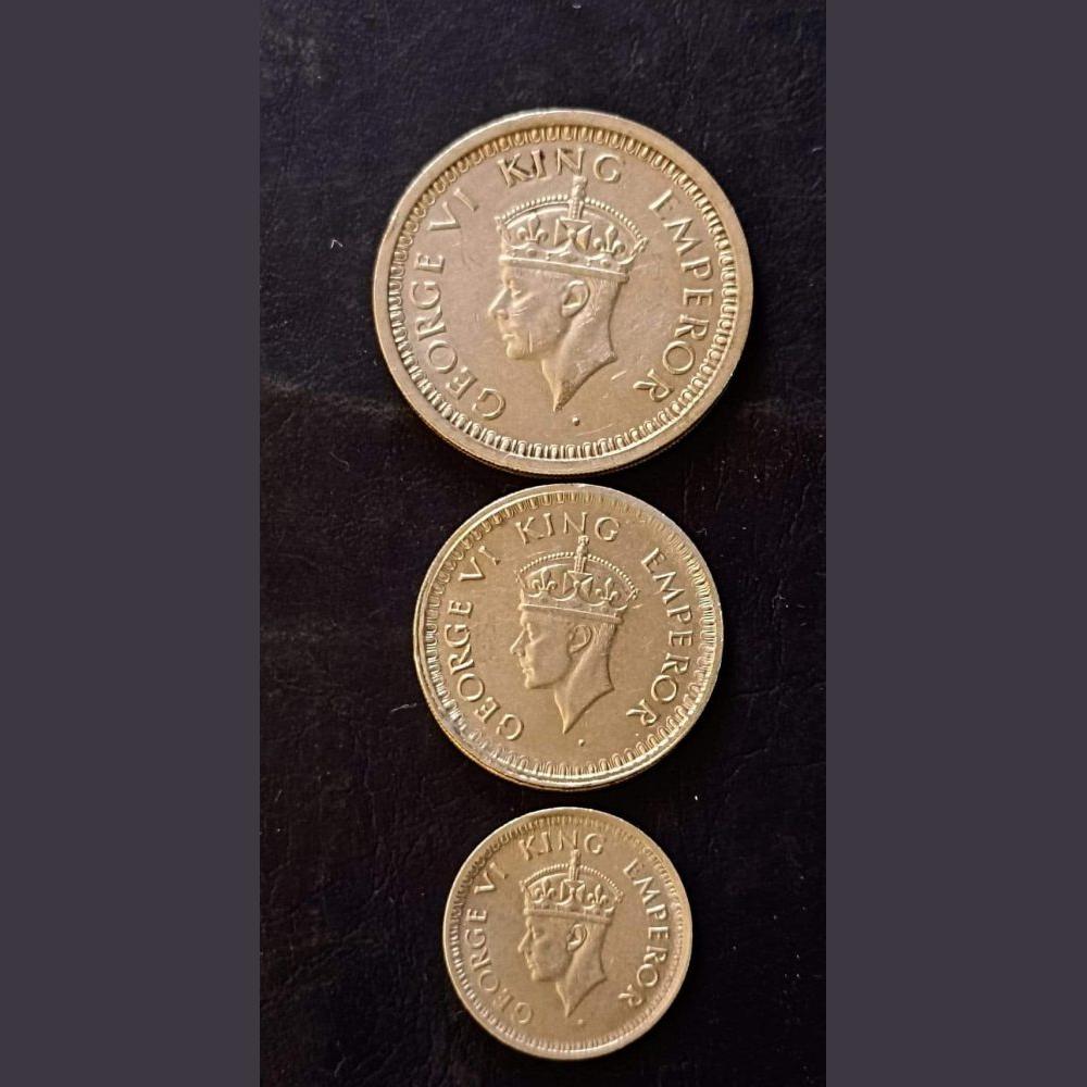 Rare rare Set of 3 pieces of 3 different denomination King and emperor George vi Denomination 1₹ 1/2