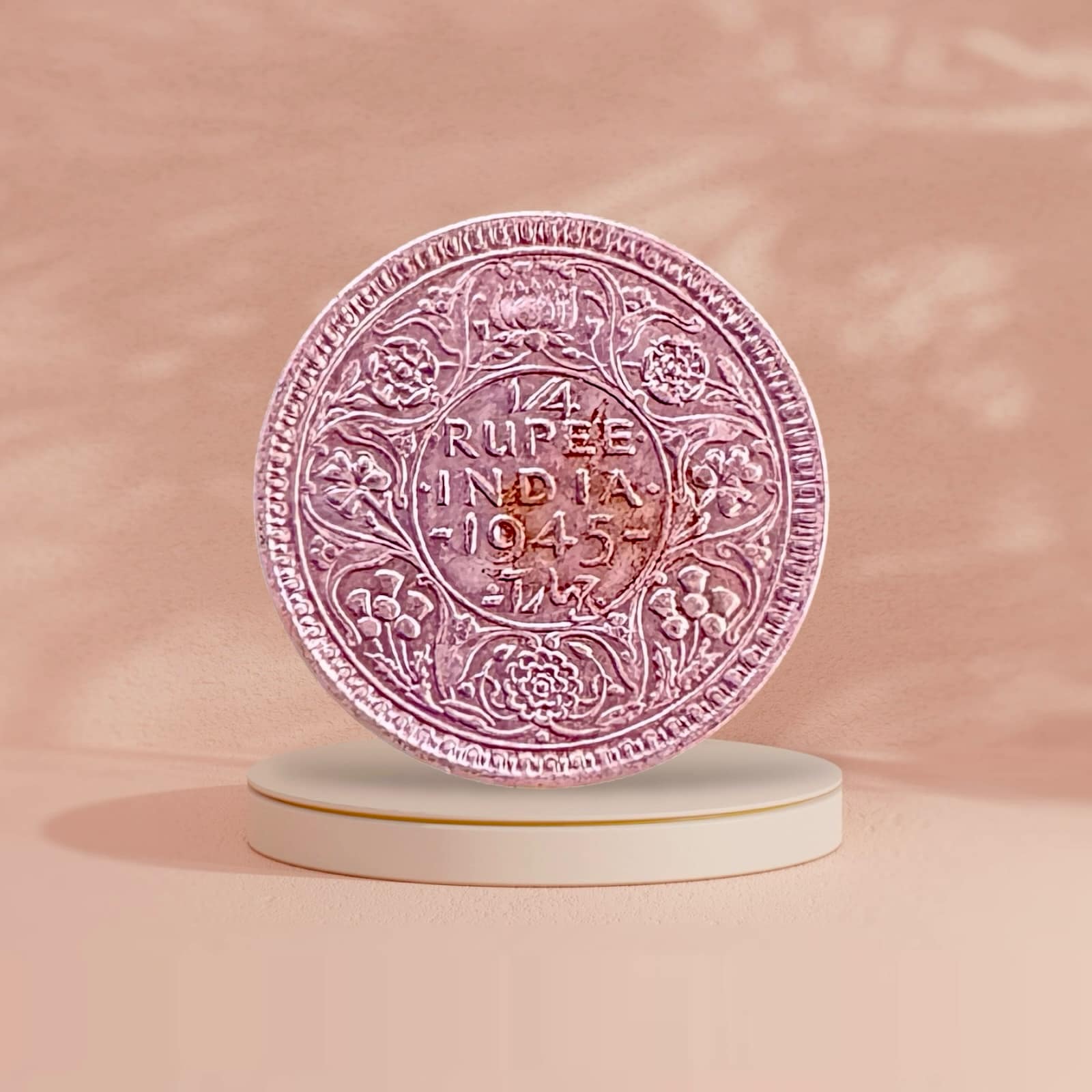 Immerse yourself in the rich history of British India with this remarkable collectible – the RE 1 British India King George VI One Fourth Rupee Silver coin from the year 1945. Issued under the reign of King George VI, this silver coin holds a denomination of 1 Rupee. Encapsulating a piece of economic history, this coin showcases intricate detailing and a rare design that reflects the era of its minting. With a focus on banknote collection, this item stands out as a unique addition to any collector’s trove. The allure of old coins lies in their ability to evoke a sense of nostalgia and intrigue, making them highly sought after by both amateur and seasoned collectors alike. This collectible piece offers not only a glimpse into the past but also a potential investment opportunity for those with a keen eye for historical treasures.