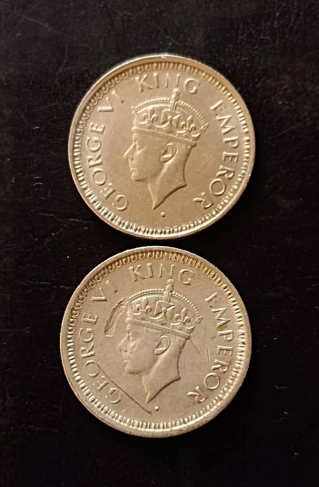 Silver British India Set of two pieces of 2 different year king and emperor George vi Denomination 1/4₹ Excellent condition Same and similar piece available