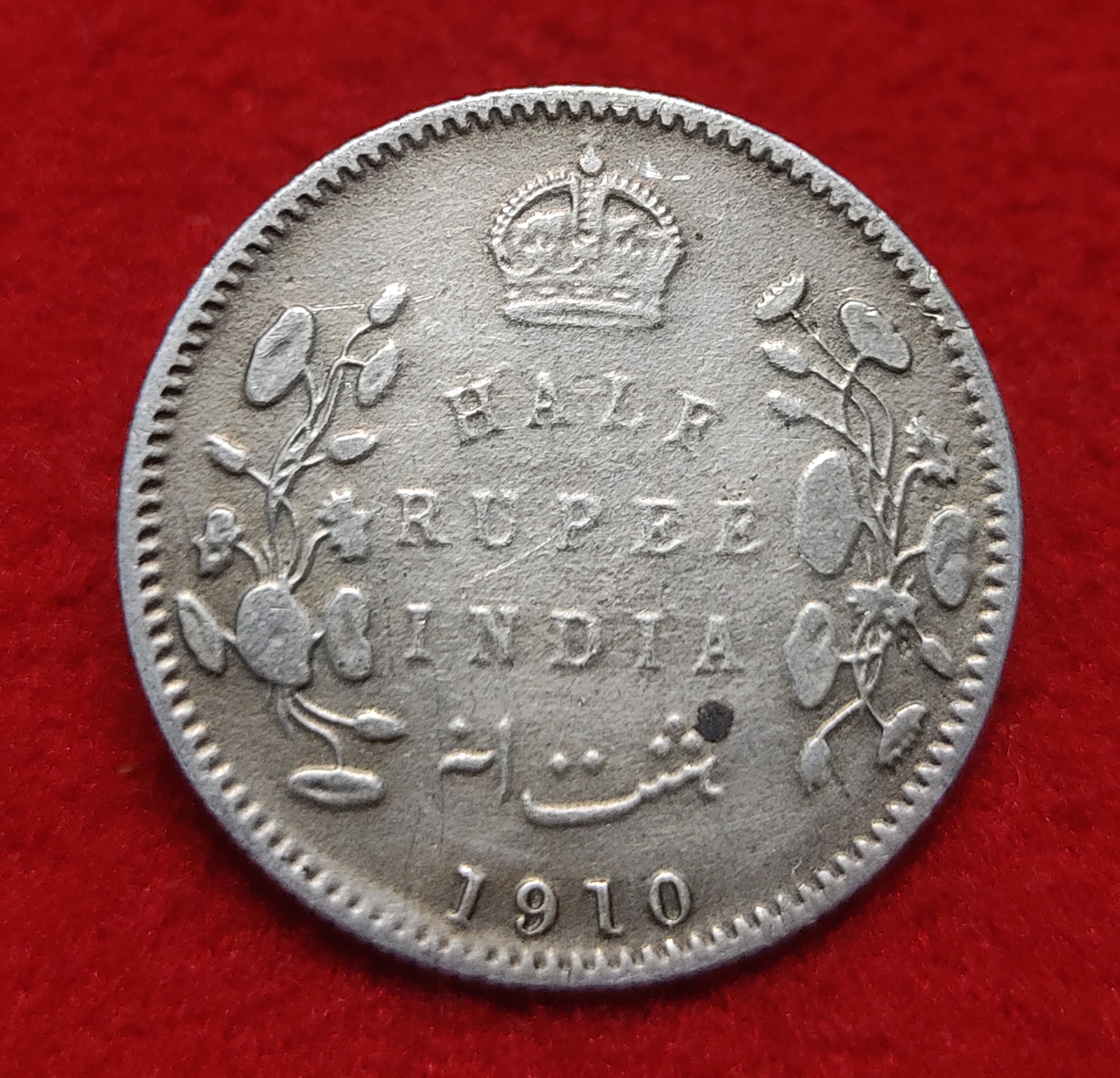 HALF RUPEE SILVER COIN EDWARD VII 1910 CALCUTTA MINT
