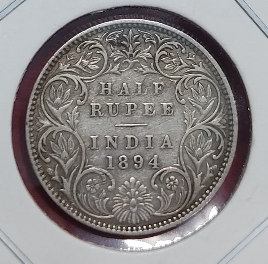 HALF RUPEE SILVER COIN VICTORIA EMPRESS 1894 BOMBAY