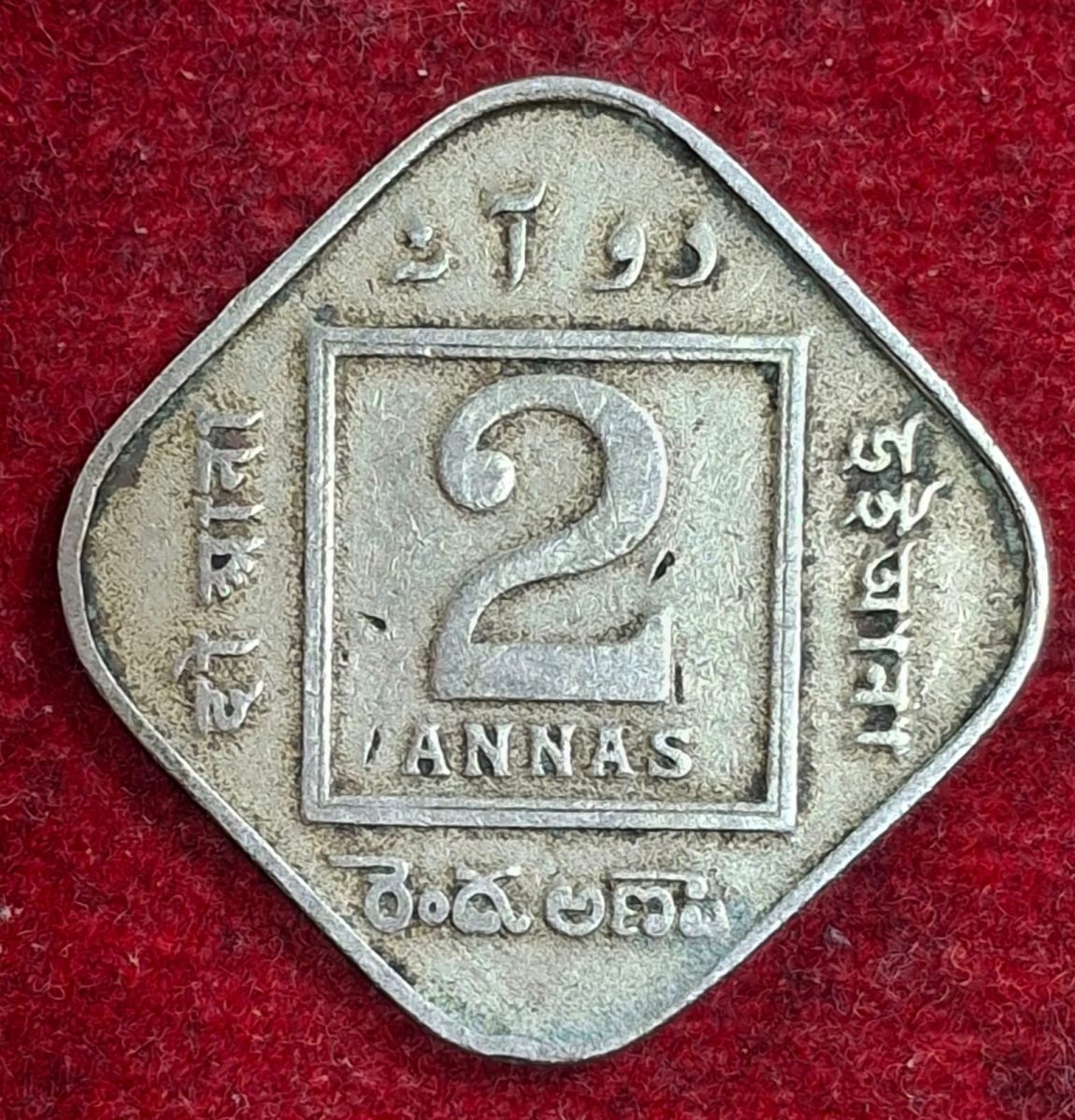 India – British 2 Annas 1918 – George V RARE LOWEST PRICE COIN #M-959