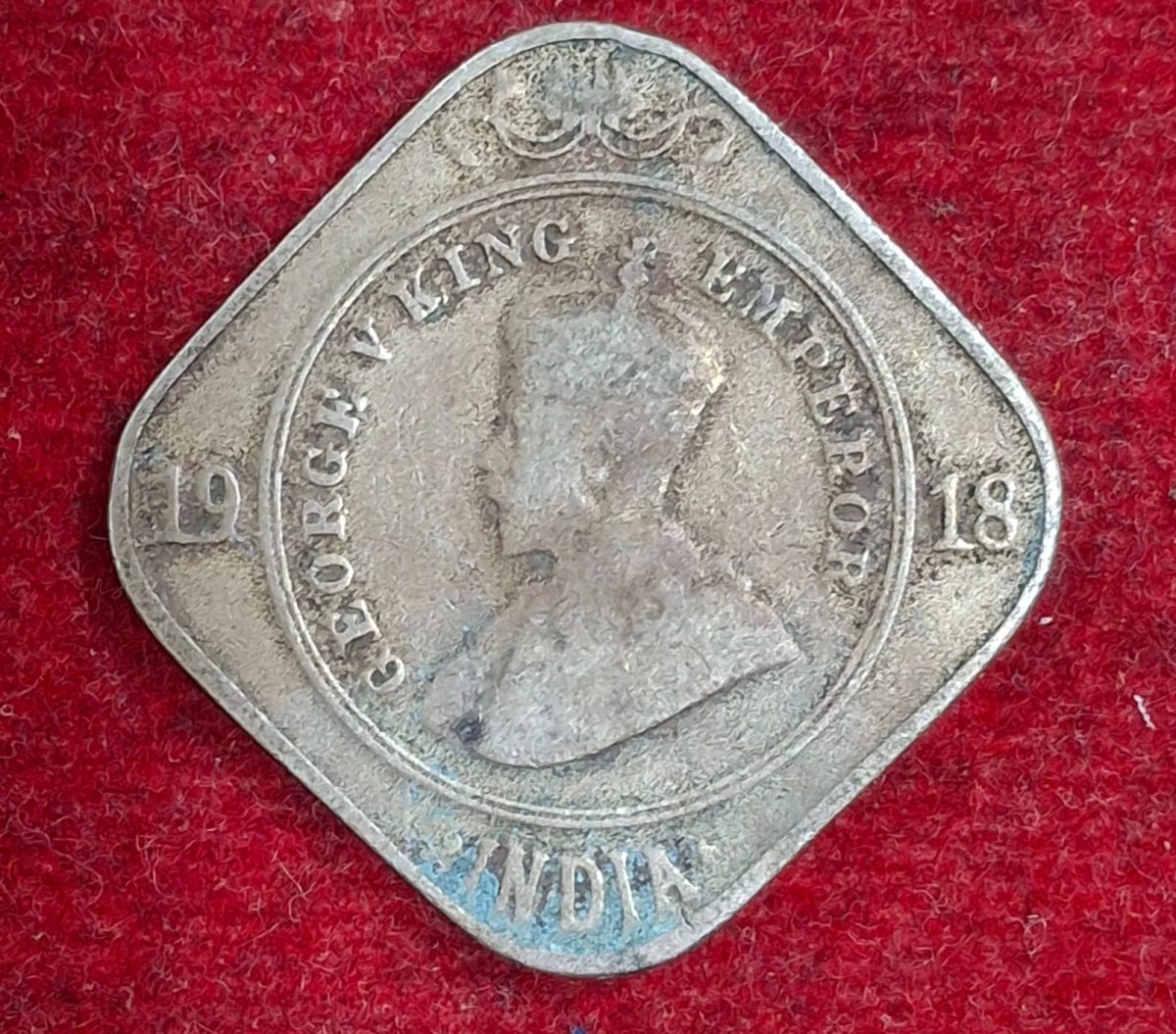 Delve into history with this rare find – the India-British 2 Annas coin from 1918 featuring the portrait of King George V. This standard circulation coin, crafted from copper-nickel, weighs 5.7g and measures 25.3mm in a square shape with rounded corners. Minted during the era of British India, this piece holds a piece of the past with its distinct design and value of 2 Annas. The milled technique adds to its allure, while the medal alignment accentuates its historical significance. Despite being demonetized, this coin remains a prized collectible for numismatists and history enthusiasts alike. With its unique composition and low mintage, this coin stands out as a valuable addition to any collection, embodying a piece of India’s colonial past.