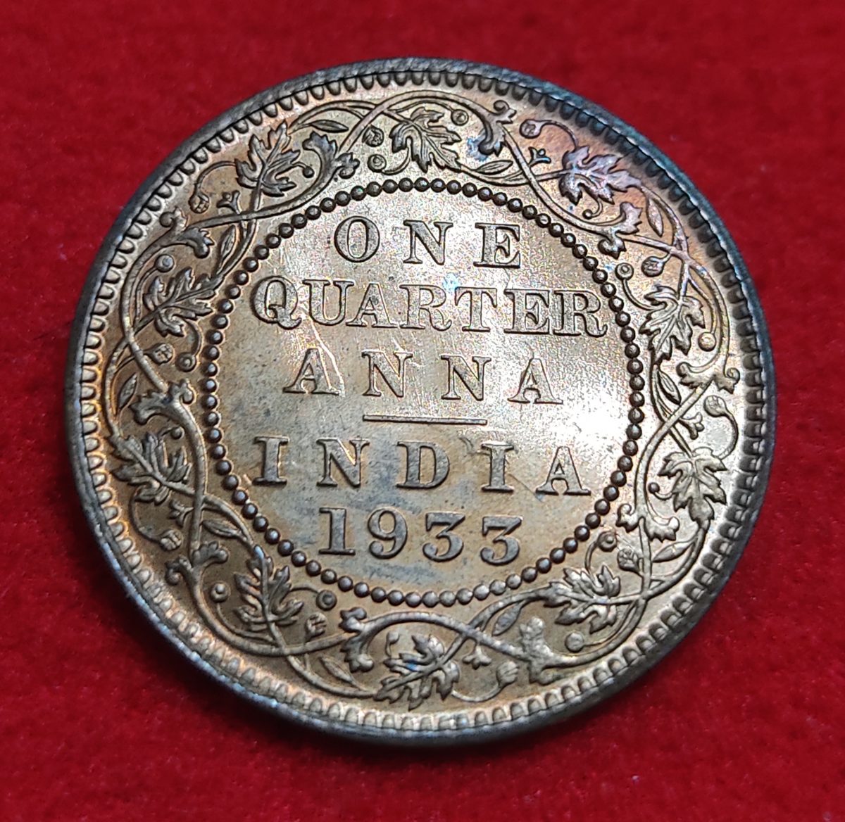 ONE QUARTER ANNA GEORGE V 1933 UNC CONDITION