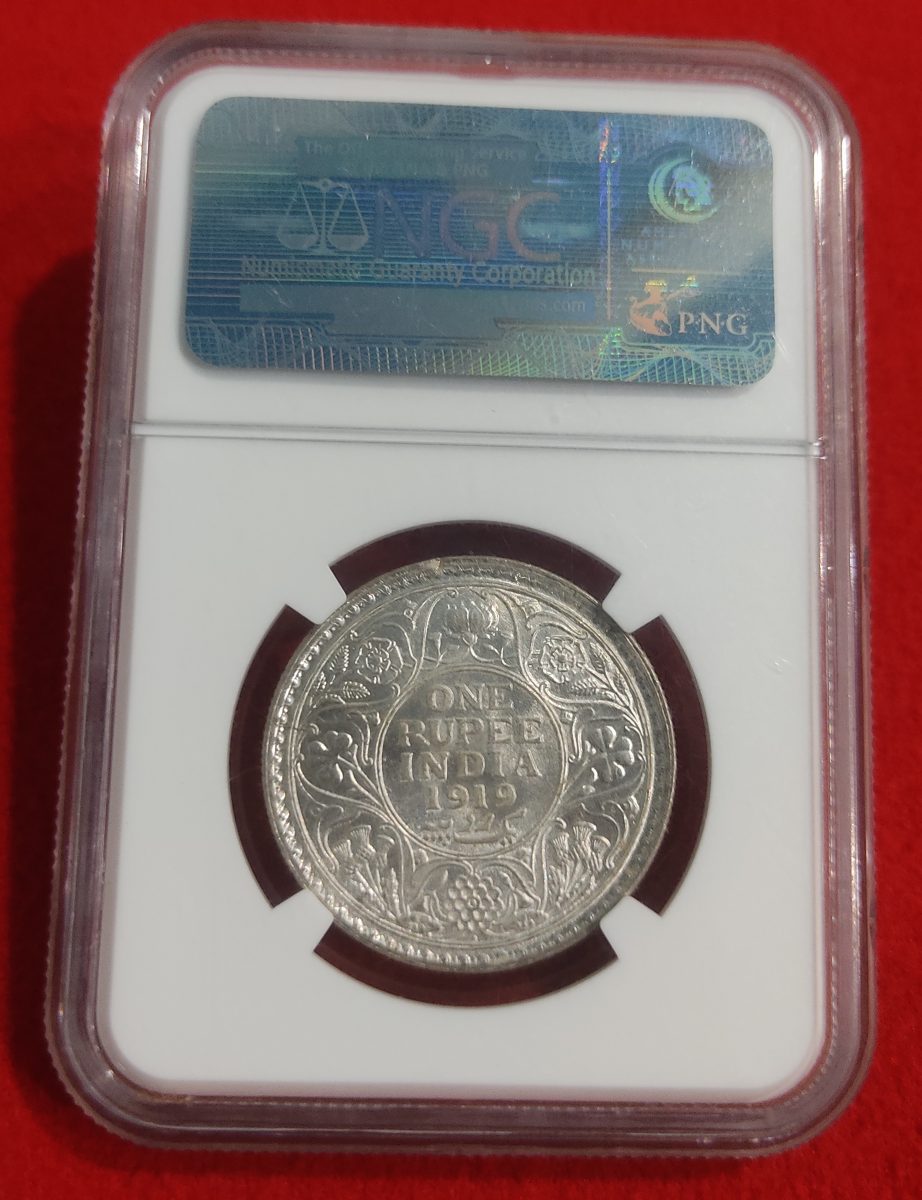 ONE RUPEE SILVER 1919 BOMBAY MINT NGC GRADED MS 62