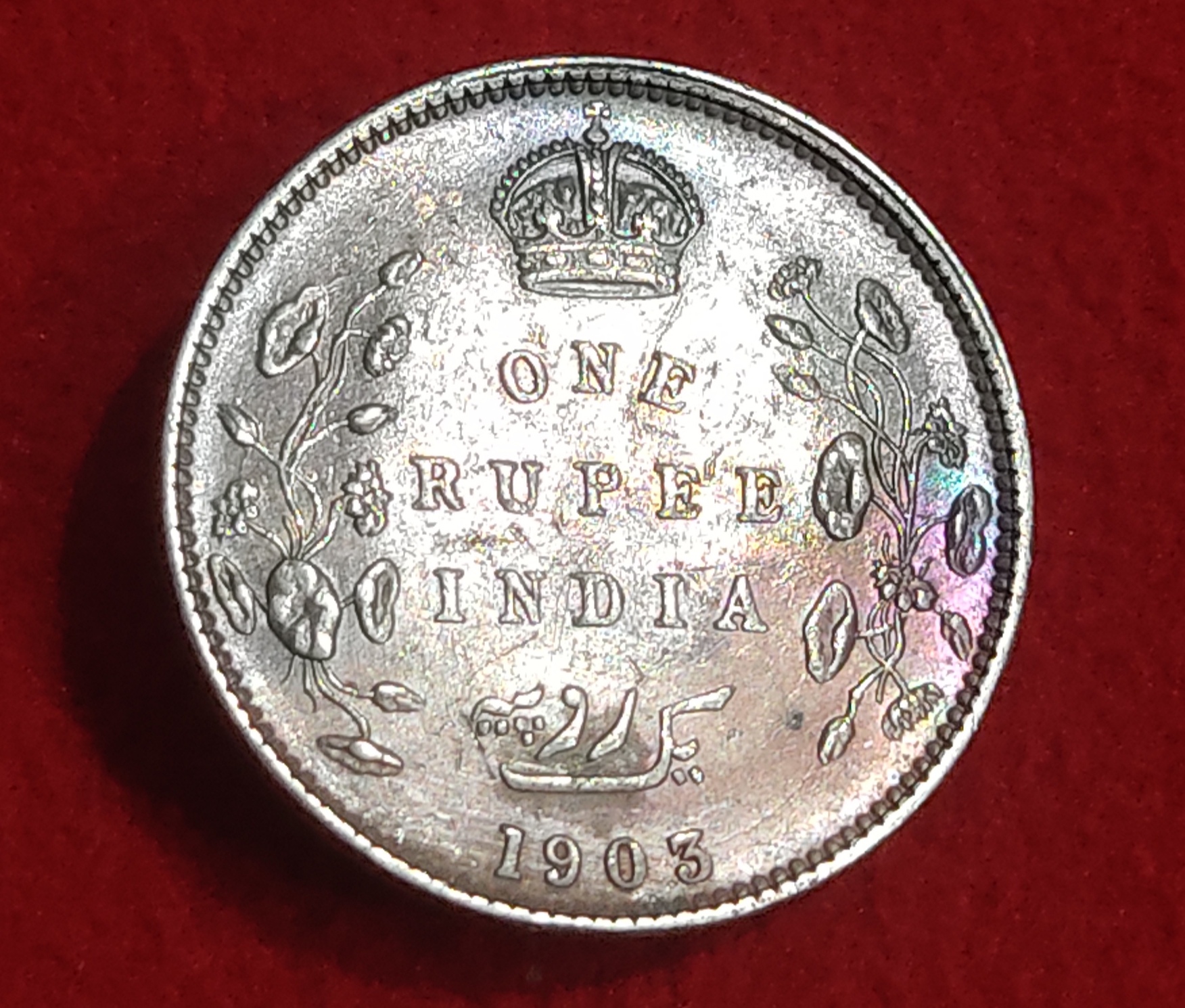 ONE RUPEE SILVER COIN EDWARD VII YEAR 1903 DIFFERENT VARIETIE B INCUSED WITH DOT