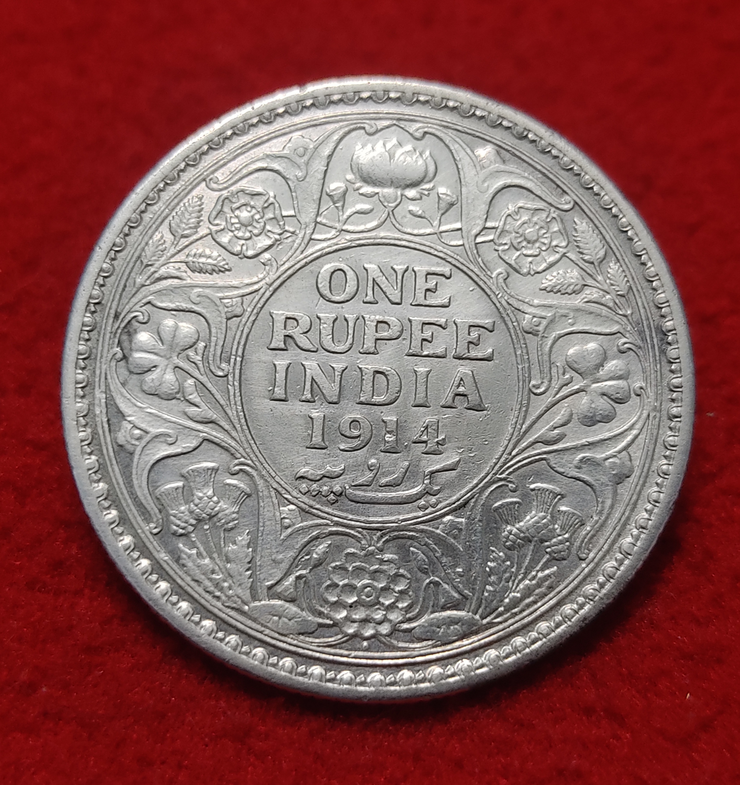 ONE RUPEE SILVER COIN GEORGE V YEAR 1914 BOMBAY MINT HIGH CONDITION COIN