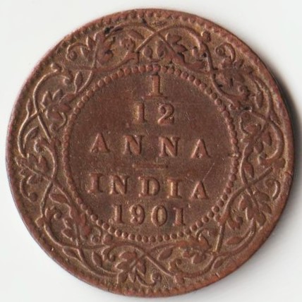 Top Grade Extremely Rare 1/12 Anna 1901 Copper Coin of Victoria Empress British India Coinage