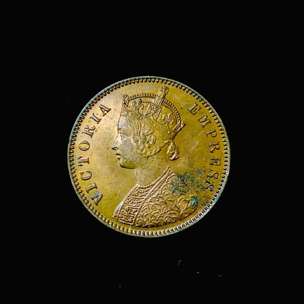 Step back in time with this exquisite collectible coin – the 1 Quarter ANNA Copper Victoria Empress Issue from the year 1893. Crafted with precision, the obverse features the graceful crowned head of Empress Victoria, delicately engraved by the renowned William Wyon. On the reverse, the coin showcases its value and date enclosed within a beaded circle and wreath. This rare piece of history holds the essence of the bygone era of India under British rule, making it a prized possession for any numismatist or history enthusiast. The intricate details and historical significance of this coin make it a valuable addition to any collection. Each coin comes with a unique story, connecting you to a time long past and adding a touch of elegance to your collection.