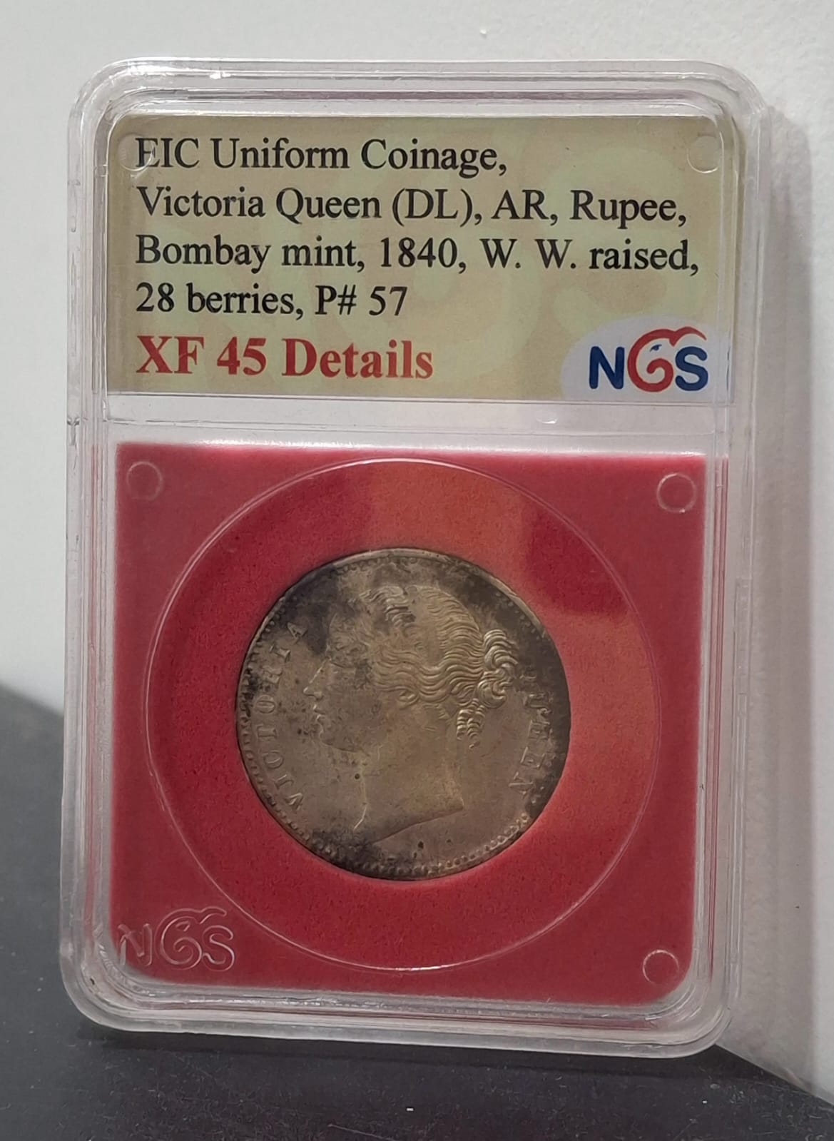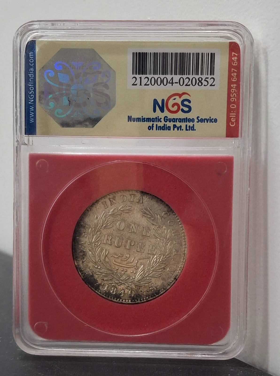 1 RUPEES 1840 VICTORIA QUEEN RARE EAST INDIA COMPANY SILVER COIN NGS GRADING XF45 # A-1203