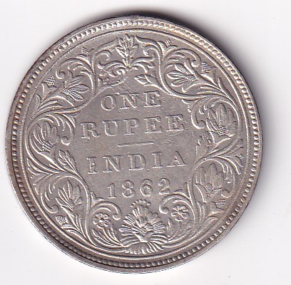 1862 British India Victoria Silver One Rupees ( 6 DOT) High Detailing Rare Coin