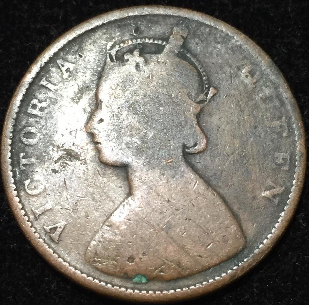1862 India – British ½ Anna – Victoria Rare Lowest Price Coin #V54