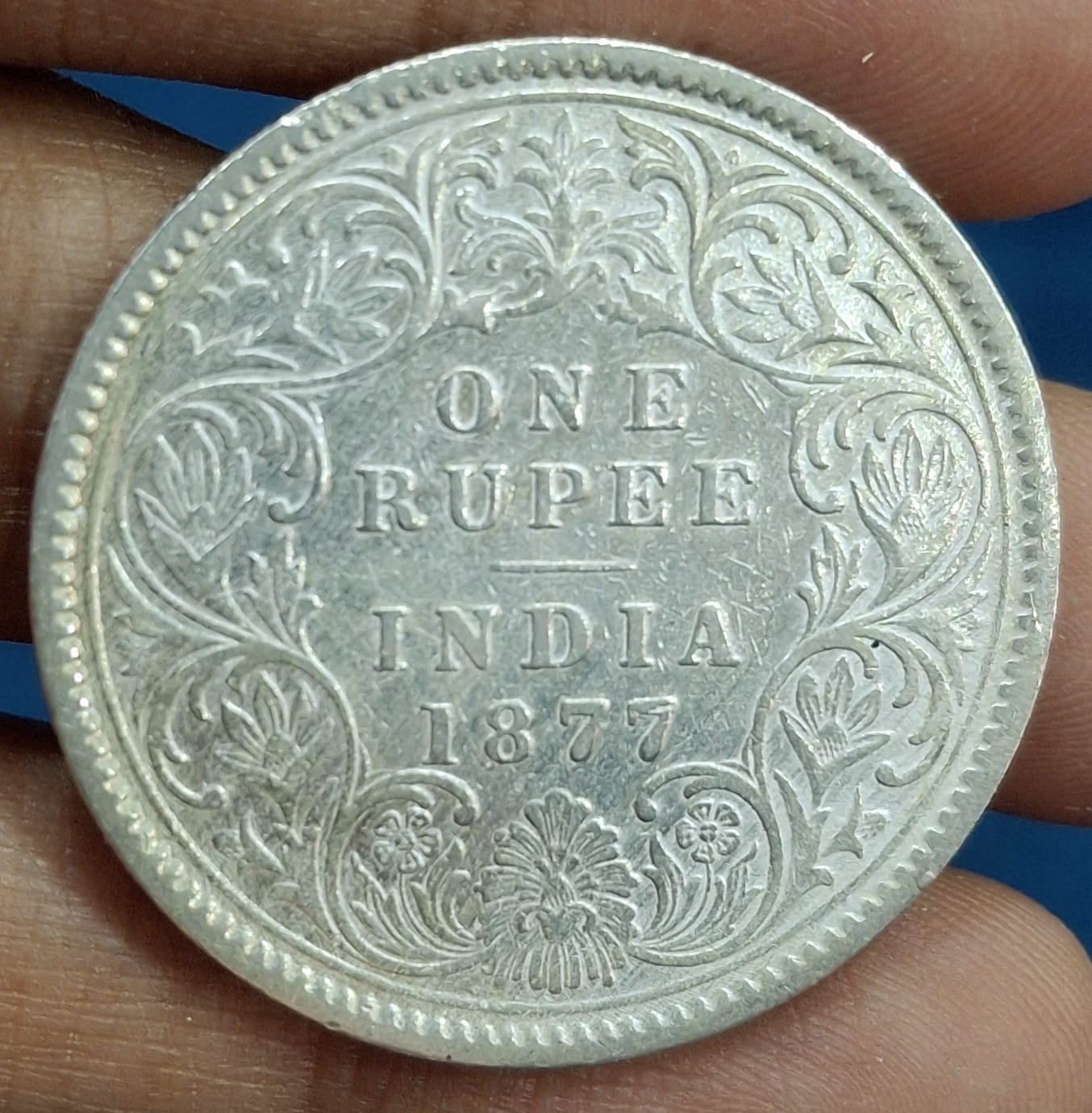 1877 ONE RUPEES VICTORIA BRITISH INDIA SILVER EXTREMELY RARE COIN