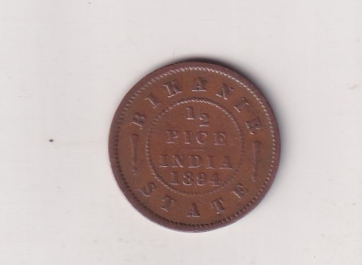 1894 BIKANER VICTORIA HALF PIE EXTREMELEY RARE COIN # 1024