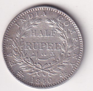 British-India ½ Rupee 1840 – Victoria Continuous legend HIGH GRADE RARE SILVER COIN #9999