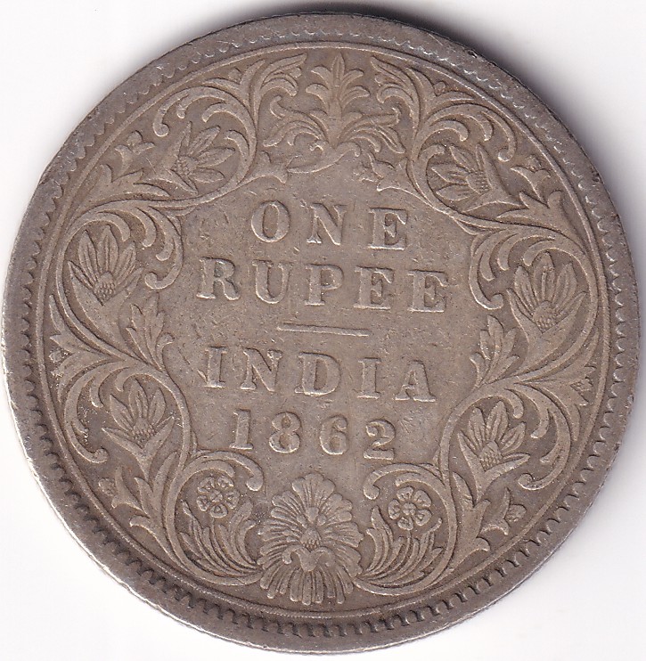 British India 1862 One Rupee Victoria Queen Silver Coin #3