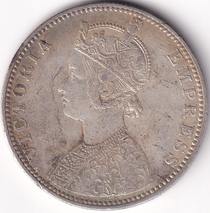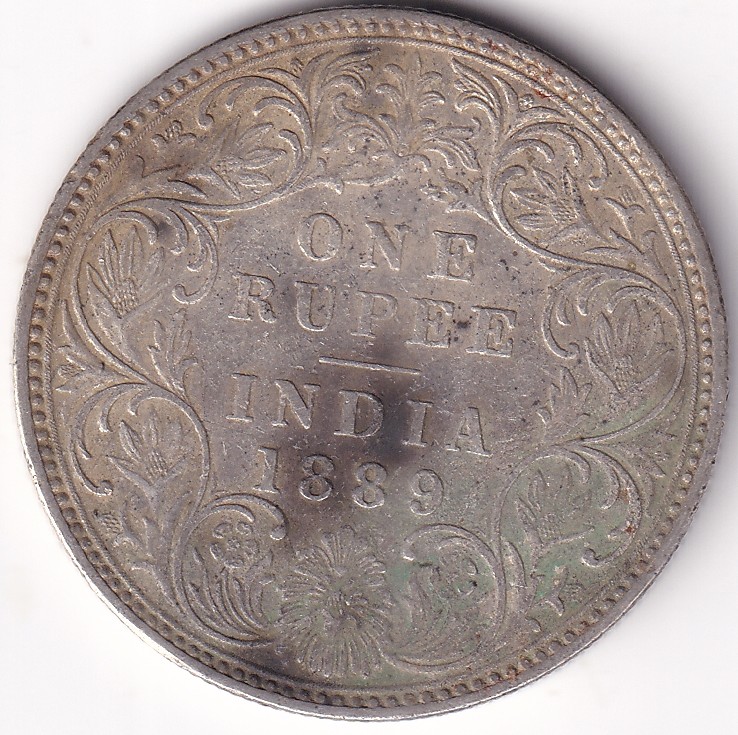 British India 1889 One Rupee Victoria Empress Silver Coin