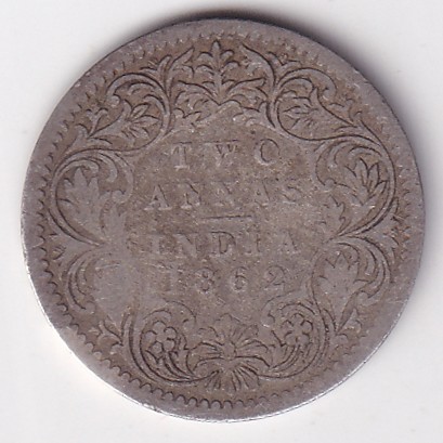 British India 2 Annas 1862 Victoria Queen Silver Rare Coin