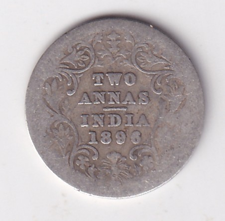 British India 2 Annas 1896 Victoria Silver Rare Coin
