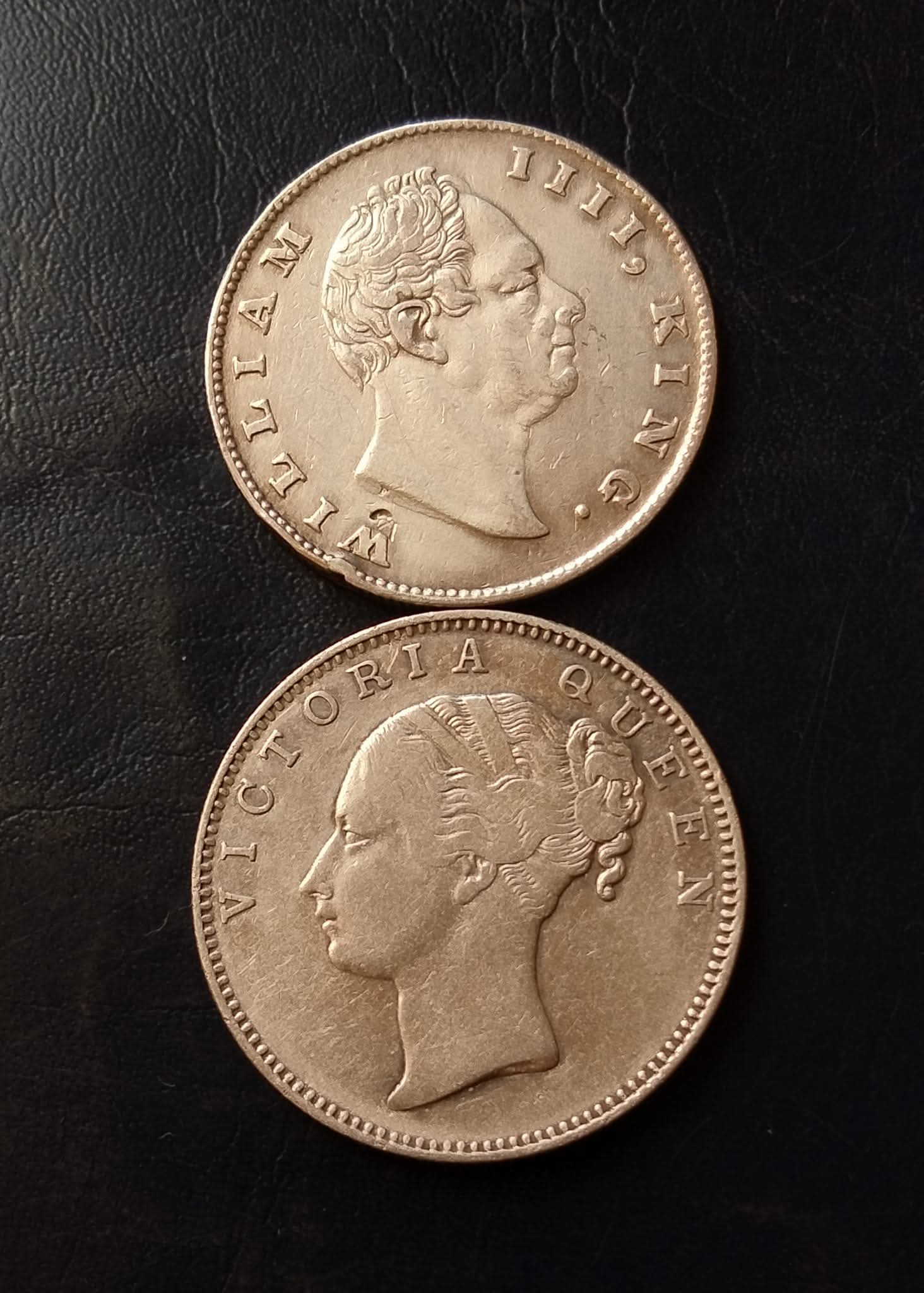 BRITISH INDIA HISTORY 2 DIFFERENT PORTRAIT ONE☝ RUPPEE King william 1935 Queen Victoria CL 1840 EAST INDIA COMPANY +80 shipping extra WT 11.5 GM EACH 1 EXCELLENT & BEAUTIFUL ❤️ ❤️ 😻 ❤️ ❤️ CONDITION Same and similar piece available