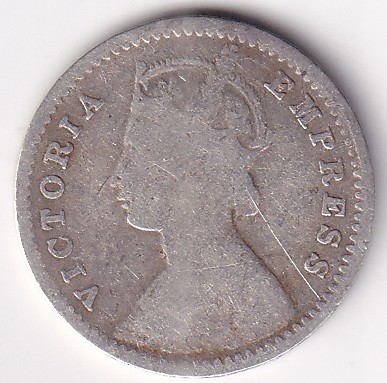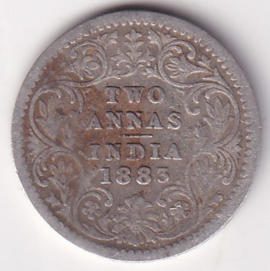 British India Two Annas 1883 Victoria Silver Rare Coin