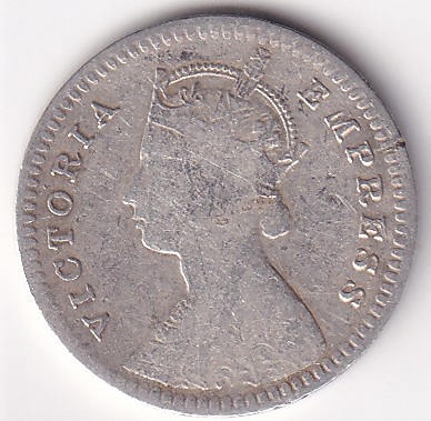 British India Two Annas 1886 Victoria Silver Rare Coin