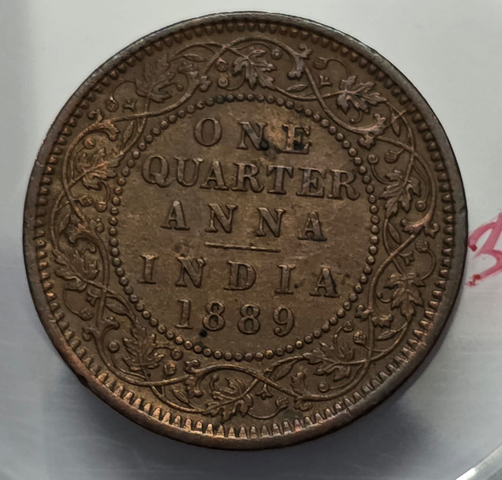 British India Victoria One Quarter Anna 1889 Copper Coin High Grade Rare