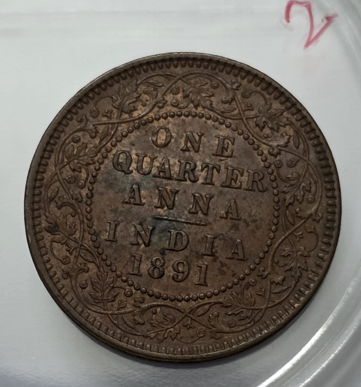 British India Victoria One Quarter Anna 1891 Copper Coin