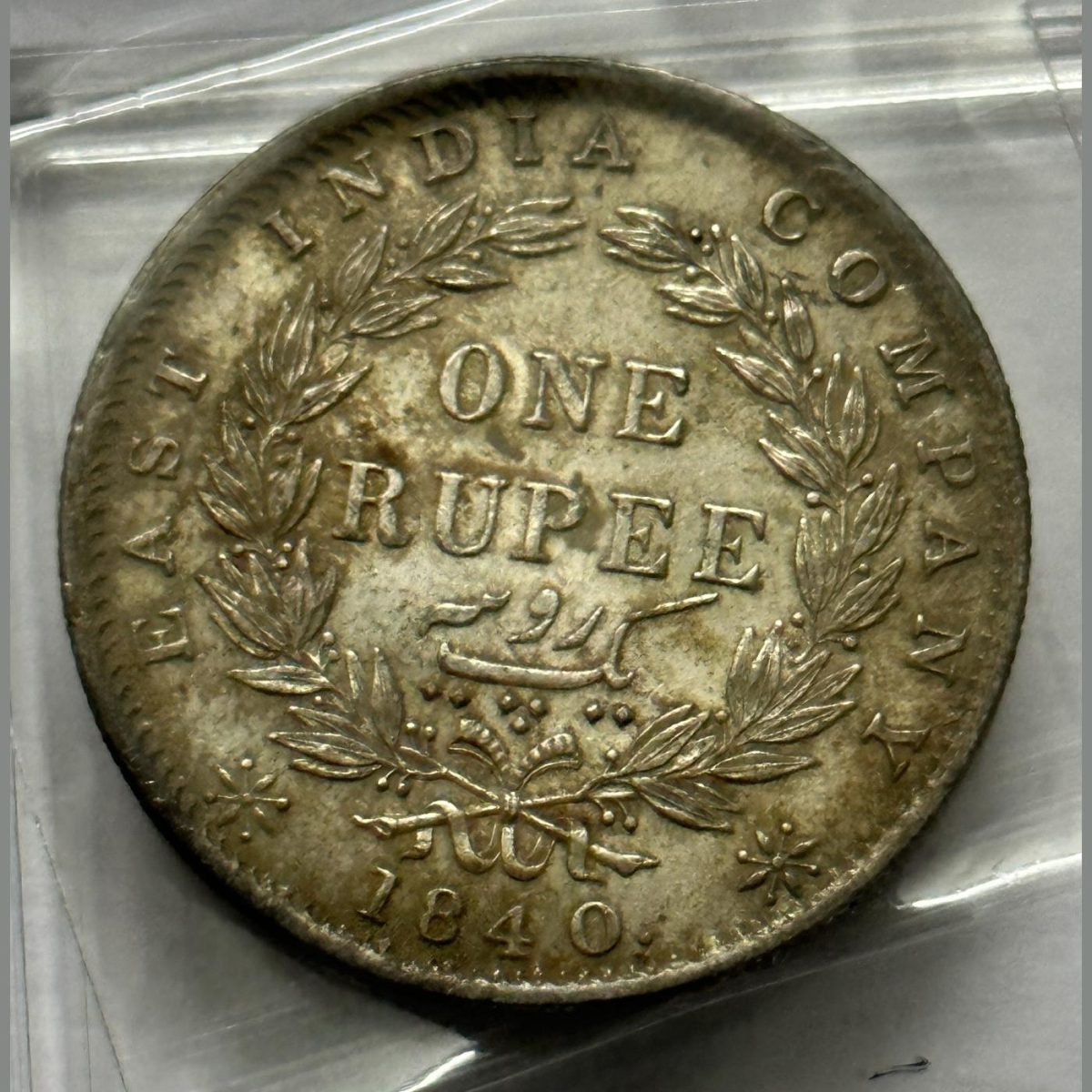 British India Victoria One Rupee 1840 Indian Head Silver Coin 35 Berries RARE