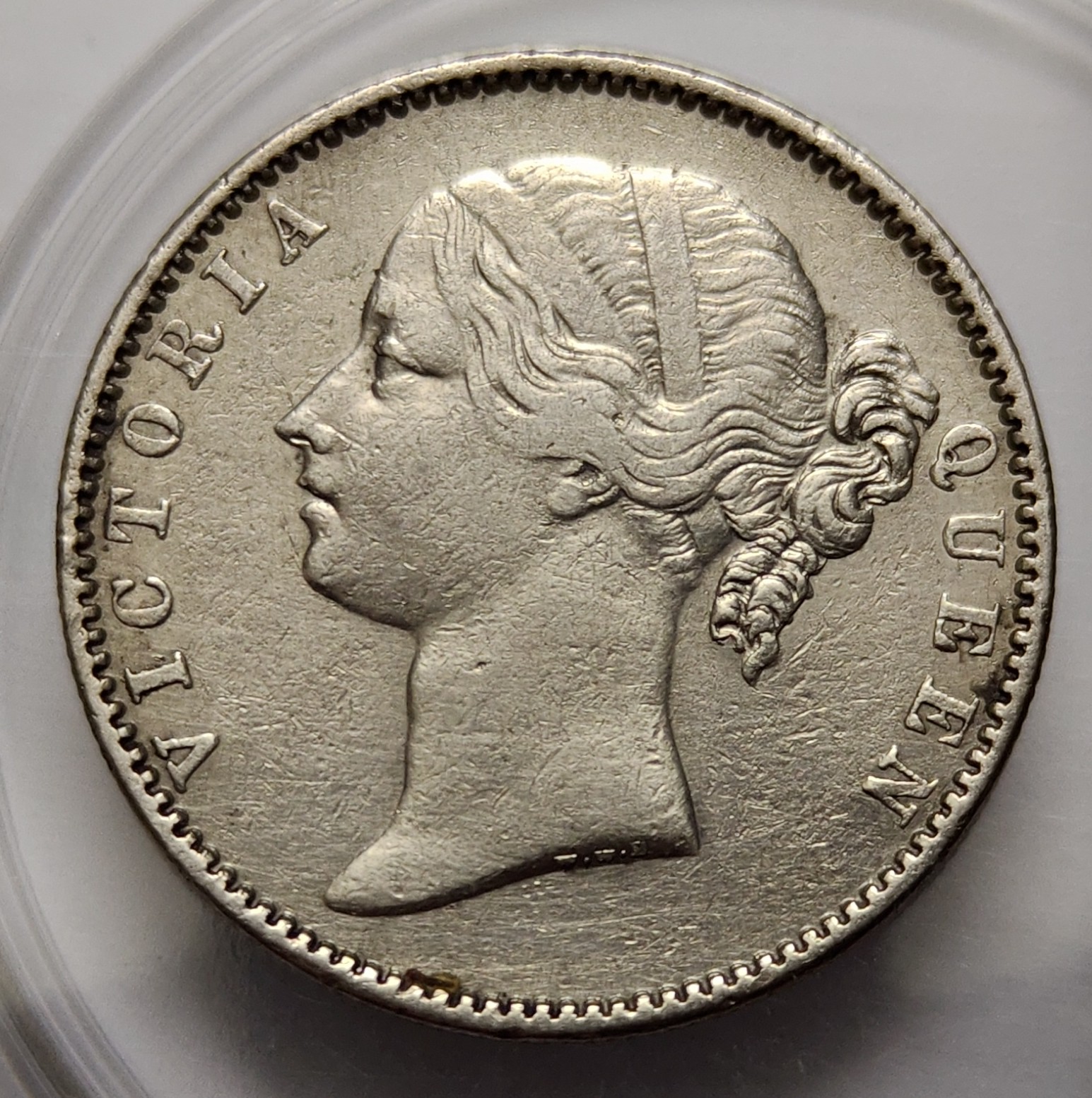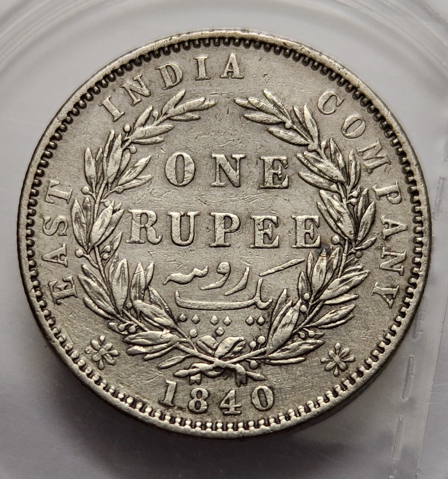 British India Victoria One Rupee 1840 WWB. Dot Divided Legend Madras Mint Silver Coin HIGH RARE