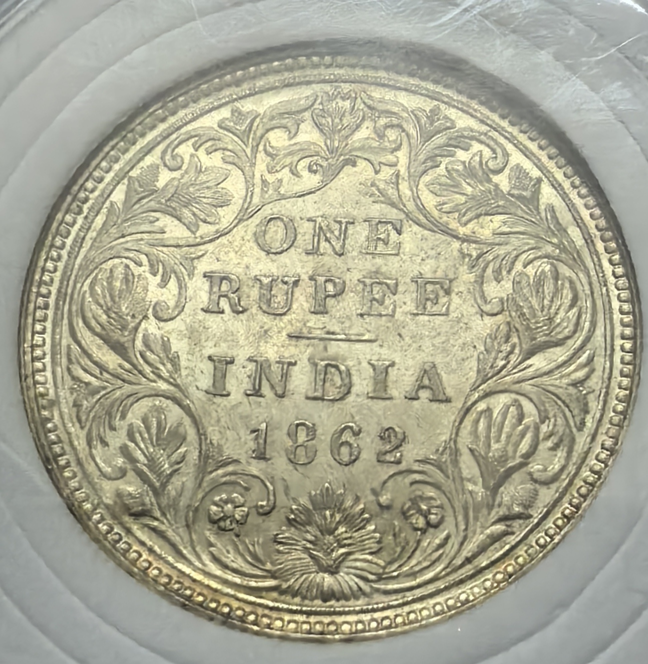 British India Victoria One Rupee 1862 Five Pannel Silver Coin Bunc