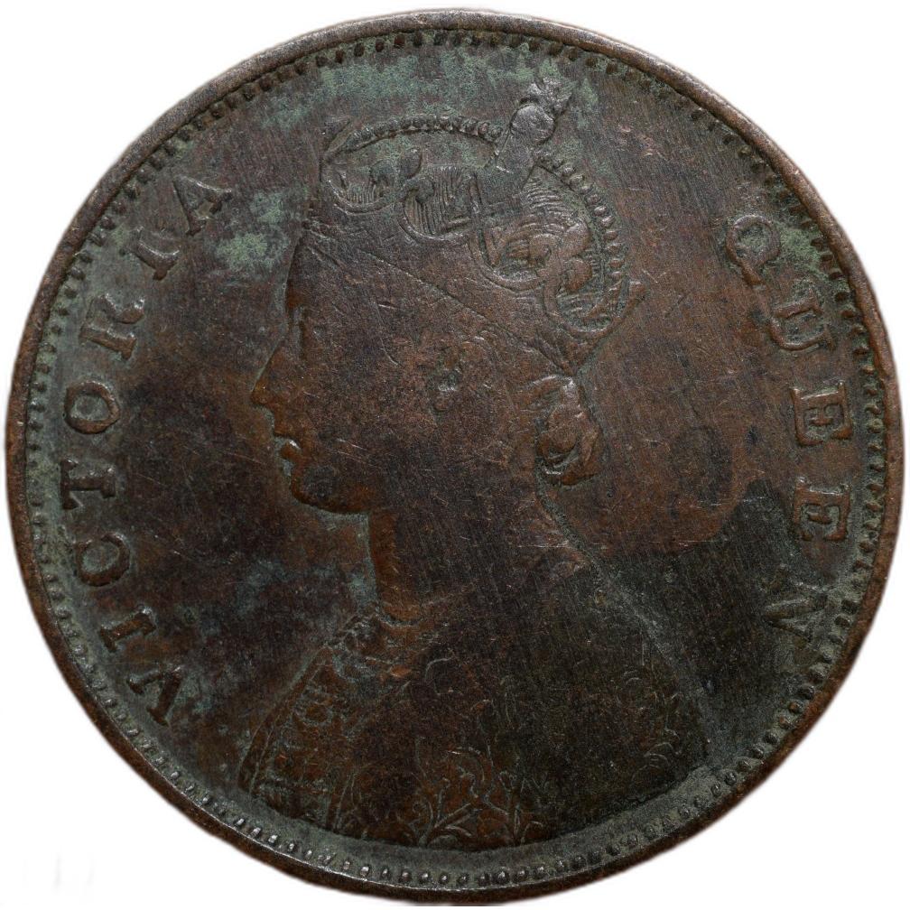 Victoria Queen, (AD 1862), Copper 1/2 Anna, Madras Mint, (Pridemore # 577), Bust Type A, Type I with ‘1’ in the Date has a slanted top, 13.04 Gms, 30.52 mm, About Very Fine, Rare.