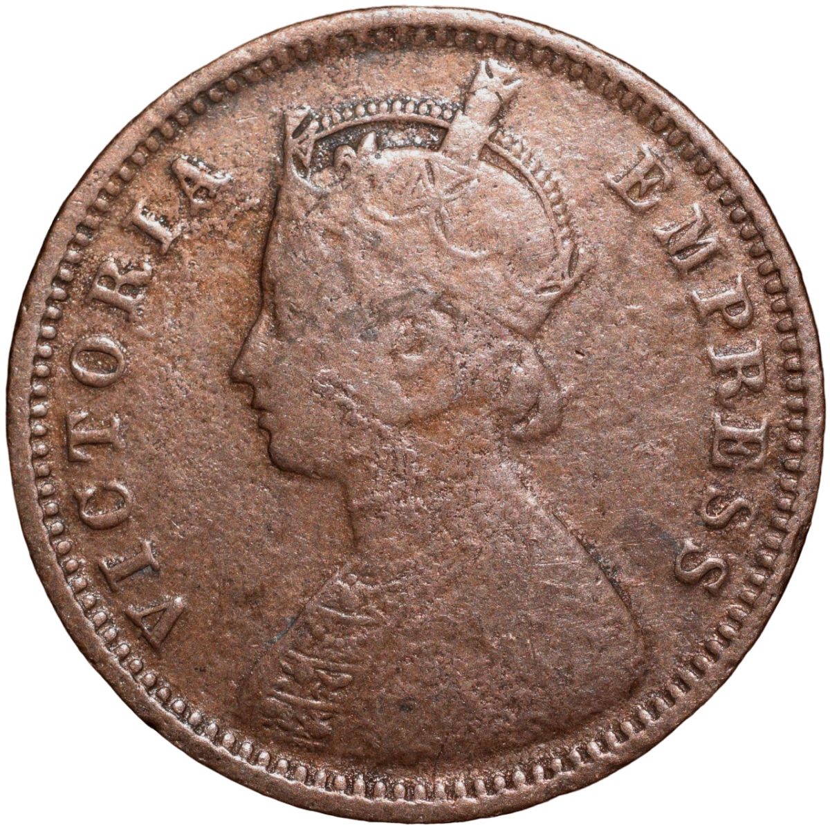 Copper 1/4 Anna of Victoria Empress (AD 1877) of Calcutta Mint Bust Type B/II – Rare