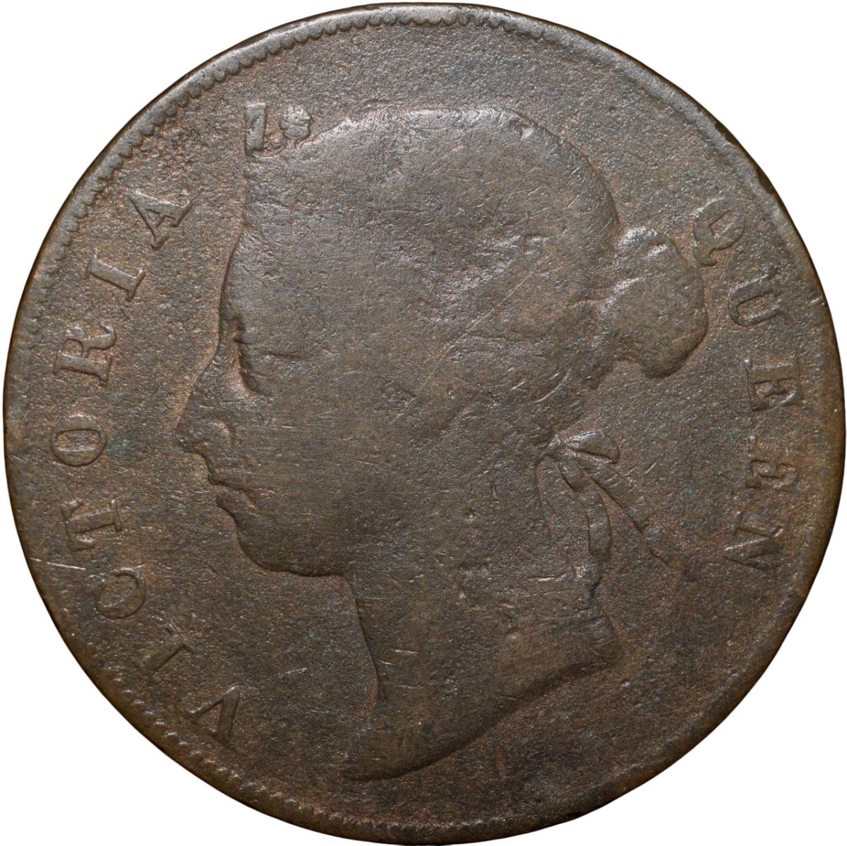 Straits Settelement, Victoria Queen (AD 1884), Copper 1 Cent, Obv: Victoria Queen facing left, Rev: Date and Denomination around, 8.80 Gms, 28.30 mm, About Fine, Rare.