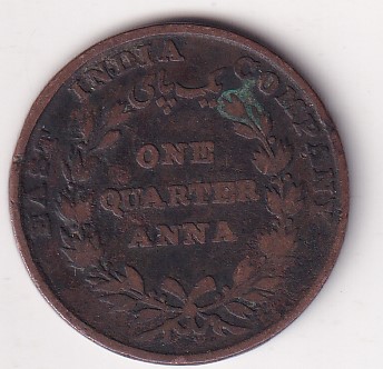 The value in English within a wreath of laurel:ONE QUARTER ANNA