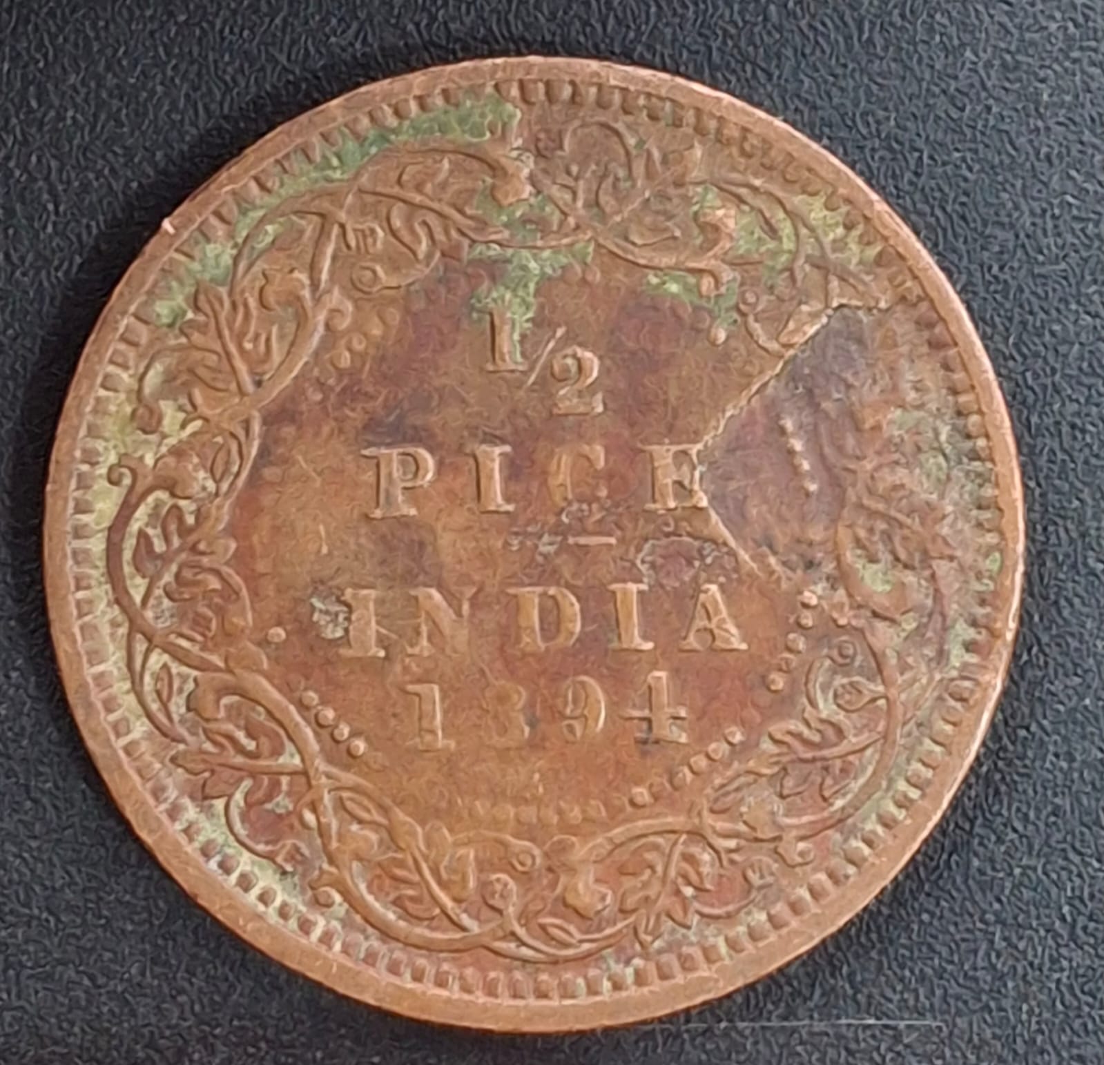 India – British ½ Pice 1894 – Victoria Rare Coin # L-718