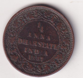 Indian princely states › Dhar, ¼ Anna 1887 – Victoria [Anand Rao Pawar III] Rare Coin #Z-168