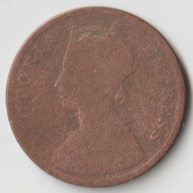 One Quarter Anna 1889 Copper Coin of Victoria Empress British India Coinage
