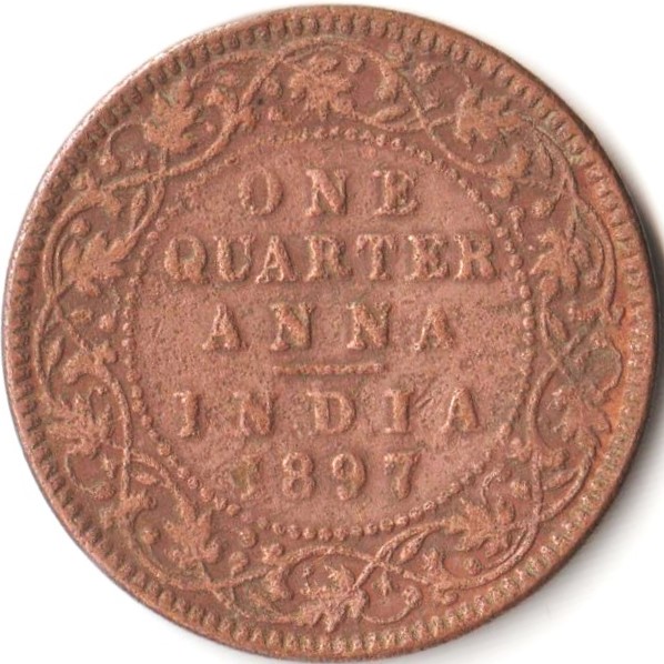 One Quarter Anna 1897 Copper Coin of Victoria Empress British India Collectible Coins