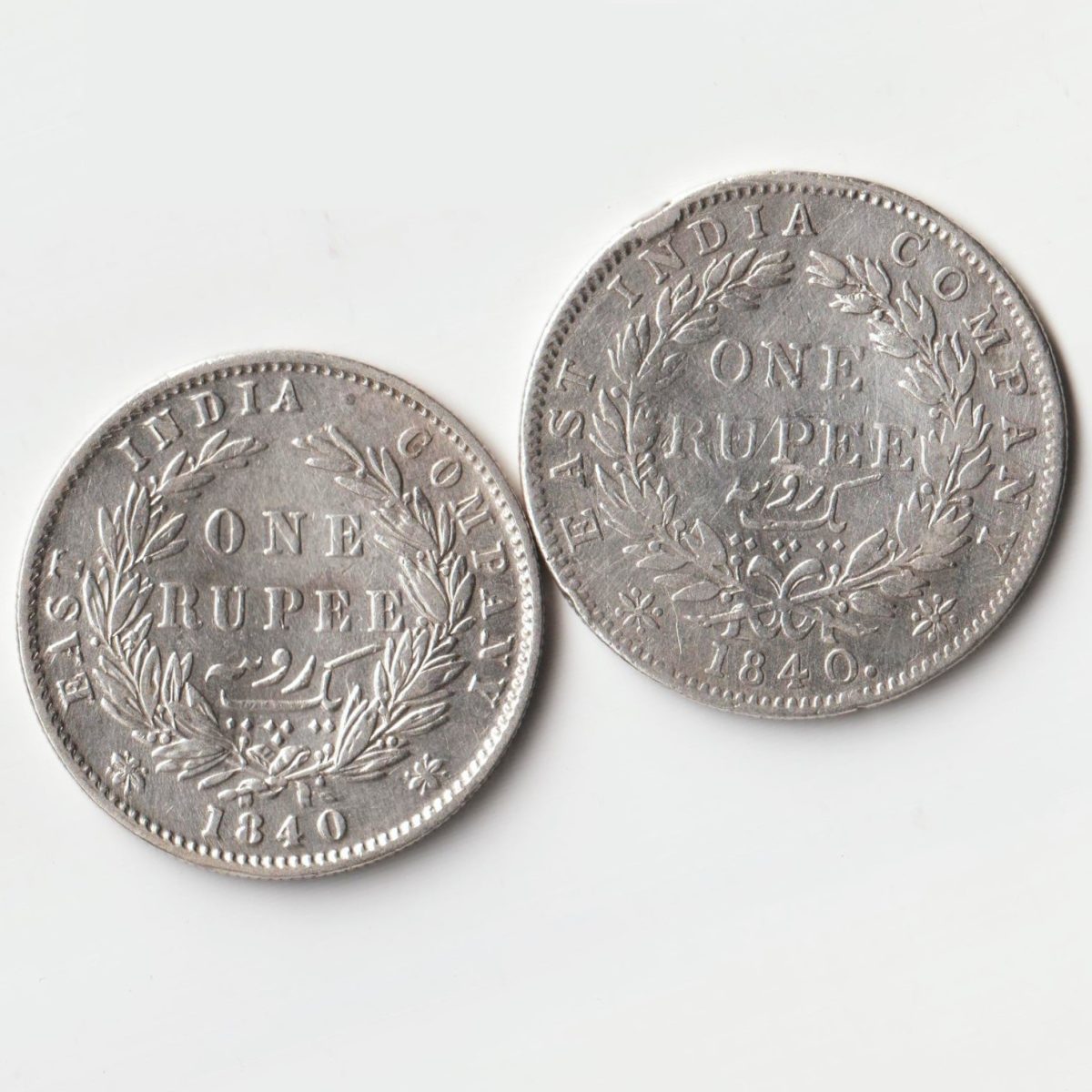 Extremely Fine Combo Set of One Rupee 1840 Silver Coin of Continuous and Divided Legend Victoria Queen British India Coinage