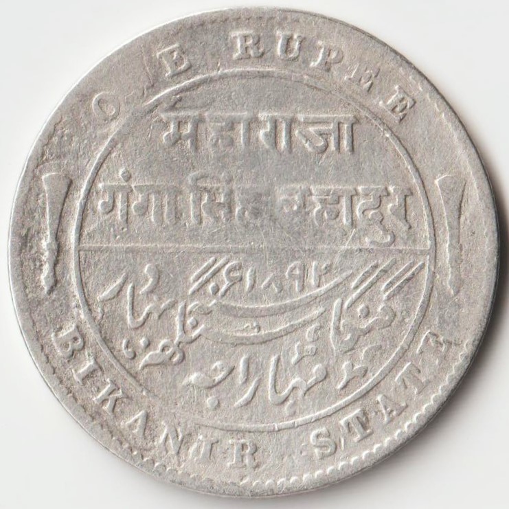 One Rupee 1892-1897 Gagan Singh Silver Coin of Victoria Empress Princely State of Bikanir