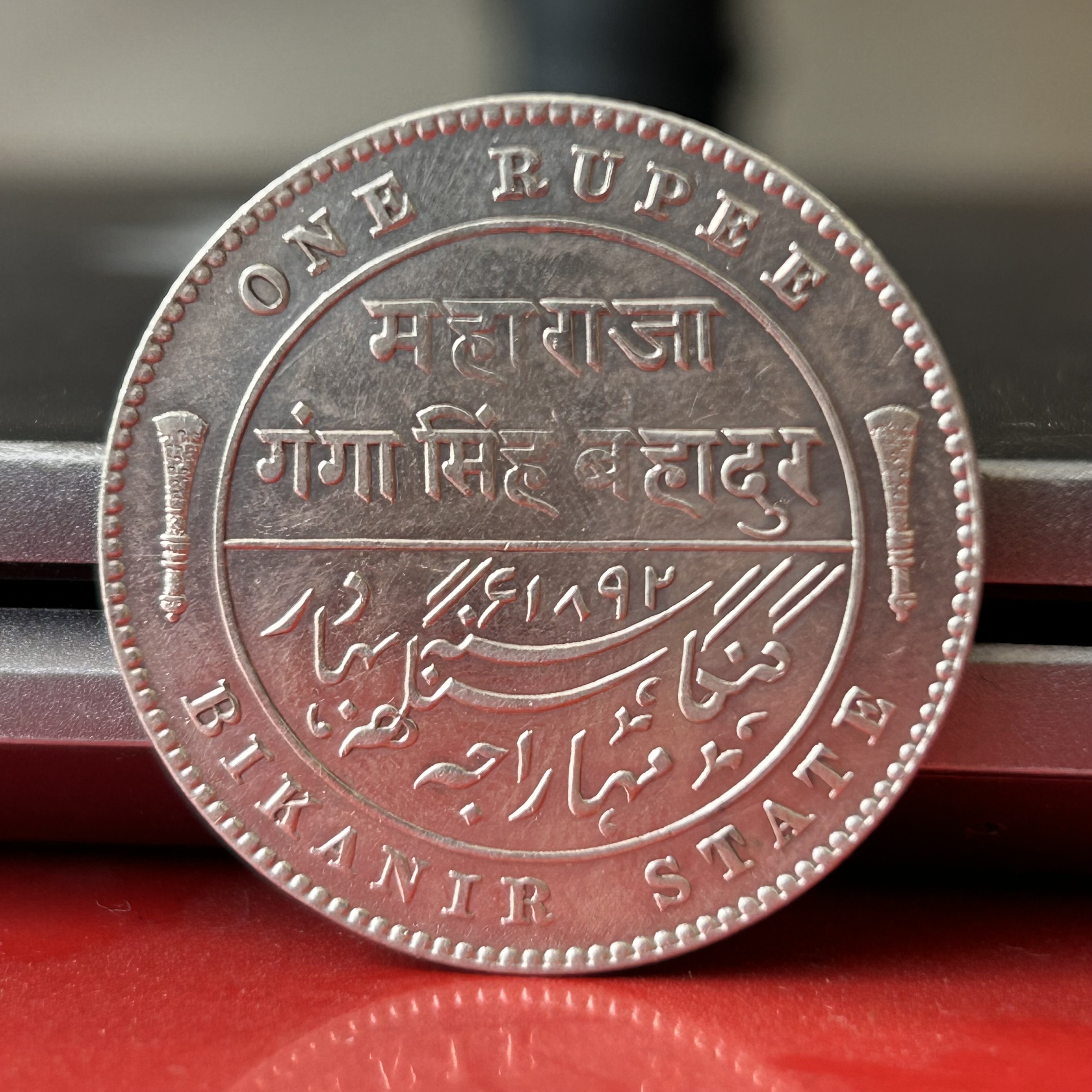 One Rupee 1892 Top Grade Silver Coin of Victoria Empress Collectible Coin of Maharaja Gagan Singh Princely State of Bikanir