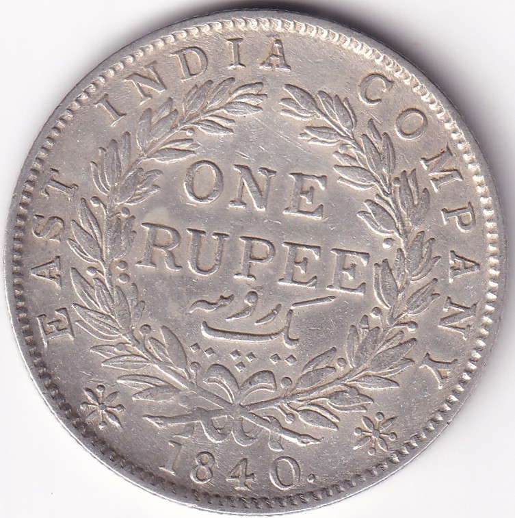 One Rupee East India Company 1840 Continuous Legend Silver Coin