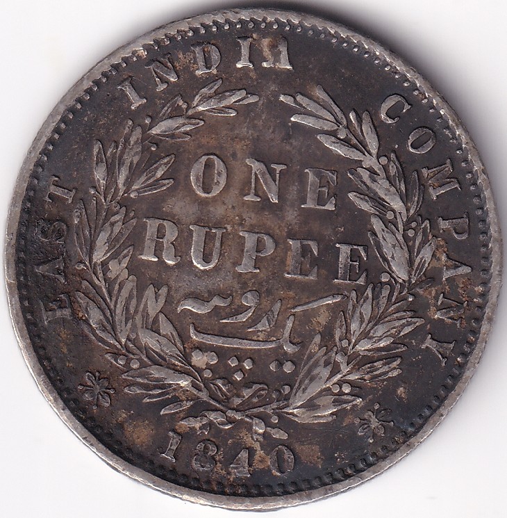 One Rupee East India Company 1840 Divided Legend Silver Used Very Fine Coin